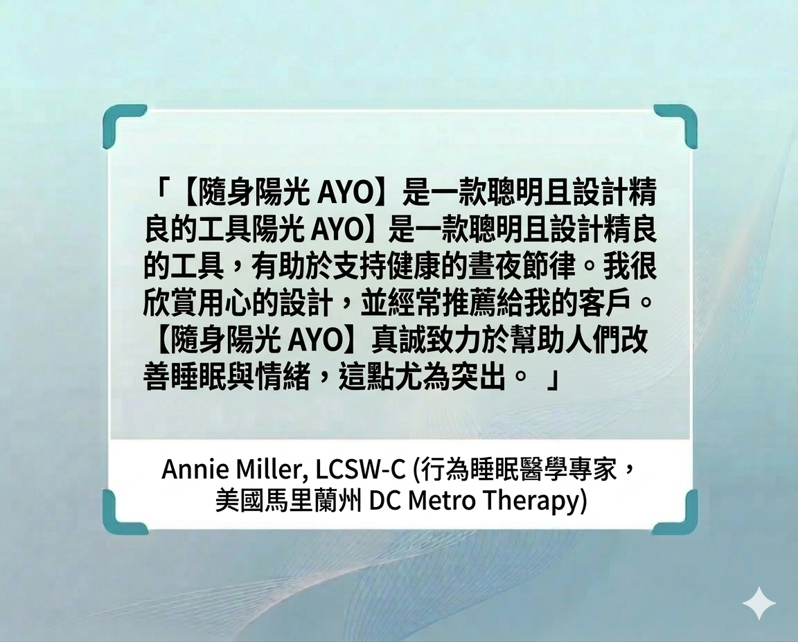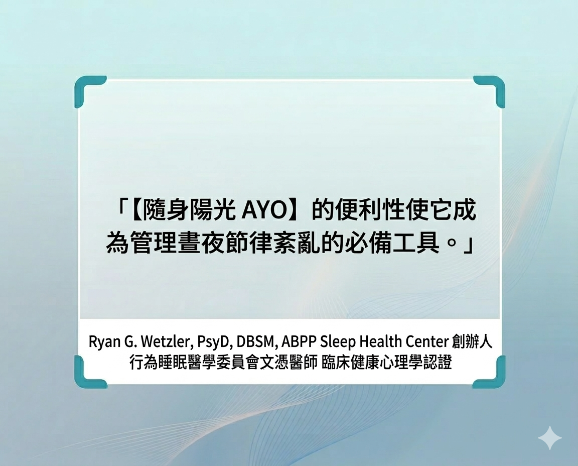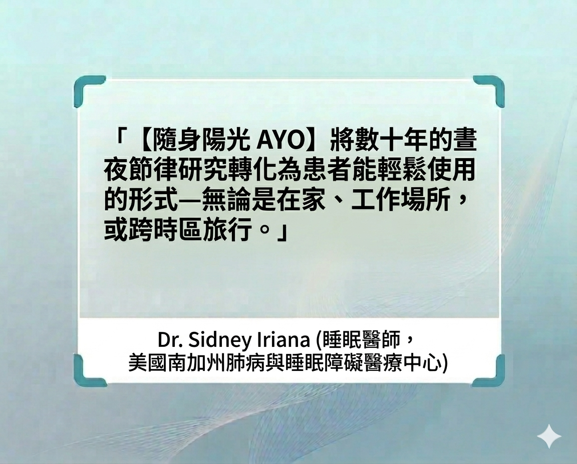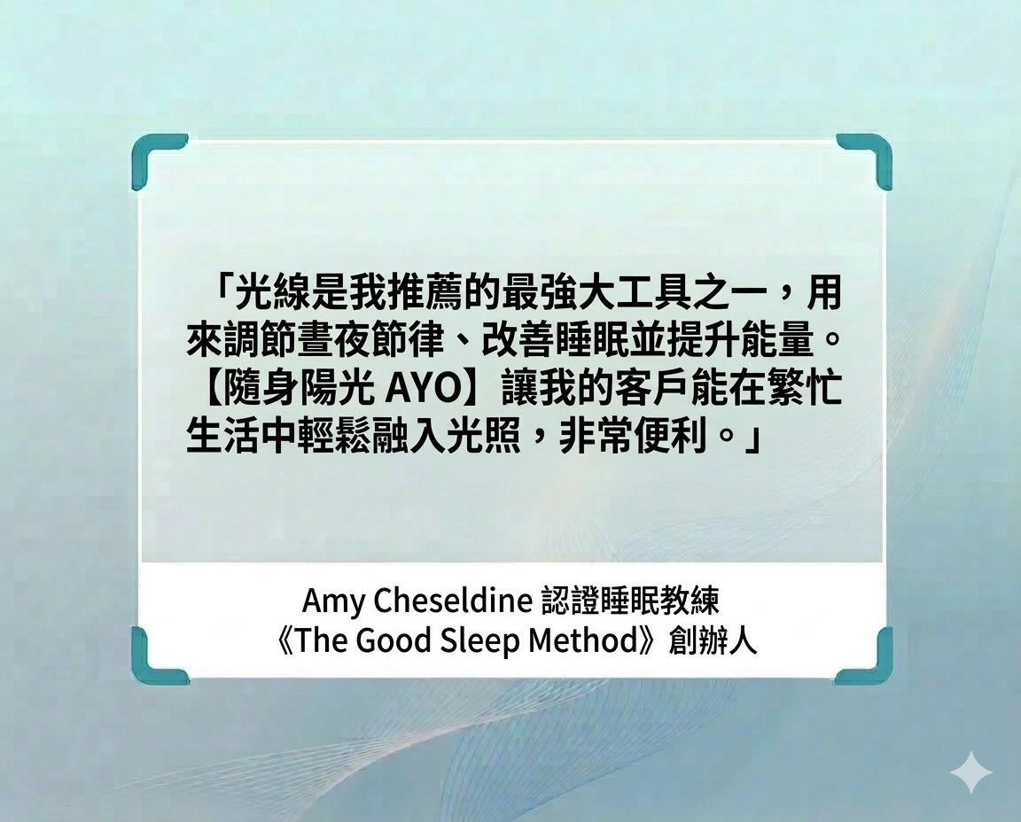不再受限於天氣或窗外的灰濛,無論是在剛甦醒的臥室、忙碌的辦公室,或是跨越時區的飛行中,[隨身陽光AYO]運用精準的生物光學技術,為你模擬自然陽光的關鍵訊號。