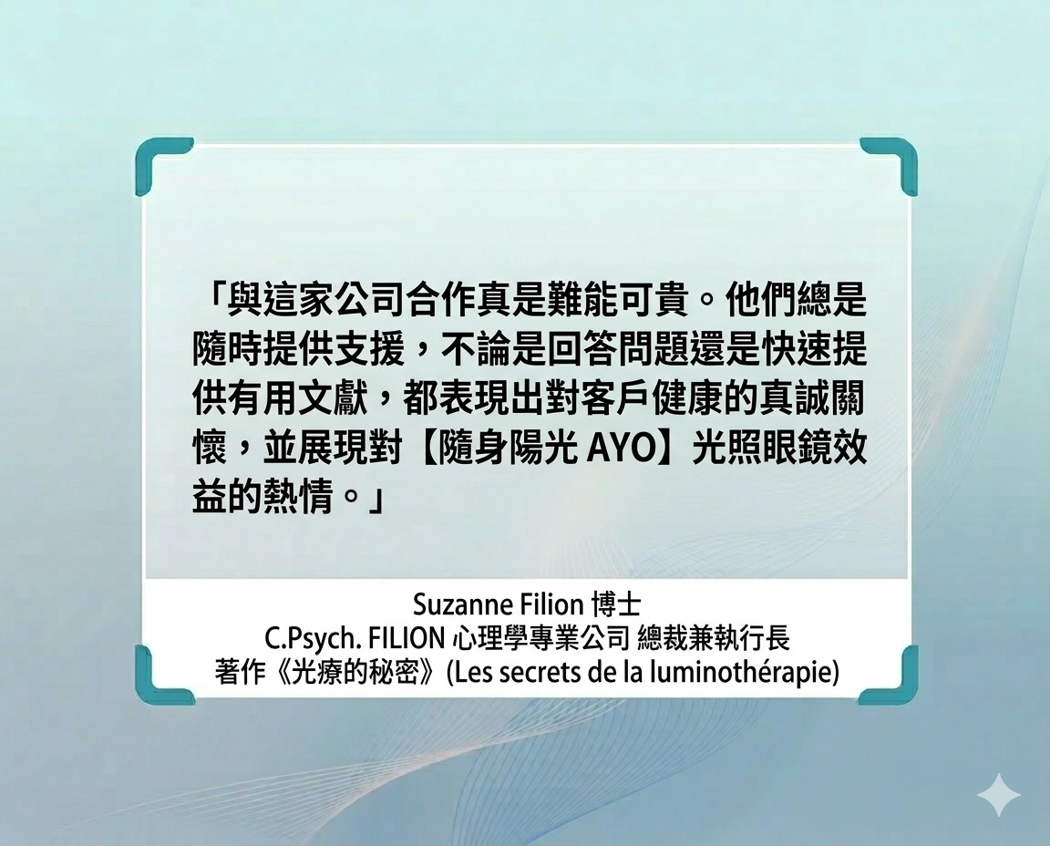 每天早晨使用 20 分鐘 【【隨身陽光 AYO】,就像把大自然的陽光帶進辦公室。就像為大腦按下清醒鍵,輔助您在晨間迅速找回專注狀態,維持整天的高效率,讓工作表現不再昏昏欲睡